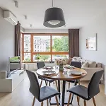 Het appartement is uitgerust met een complete keuken met apparatuur voor het bereiden van eigen gerechten. M15 Restaurant & Bar trakteren gasten op Europese gerechten en is op 8 minuten lopen verderop. De 1-badkamer accommodatie is tegenover de dichtstbijzijnde bushalte, Plac Kusocinskiego 02.